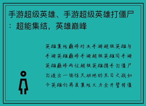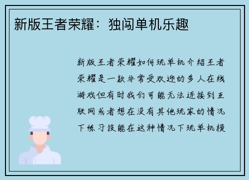 1.选择合适的队友 在放置奇兵单机版中,选择合适的队友是开局操作的关键之一。要了解每个队友的特点和技能,以便根据自己的战略需求进行选择。例如,如果你希望组建一个防守型的队伍,那么选择具有高生命值和防御...